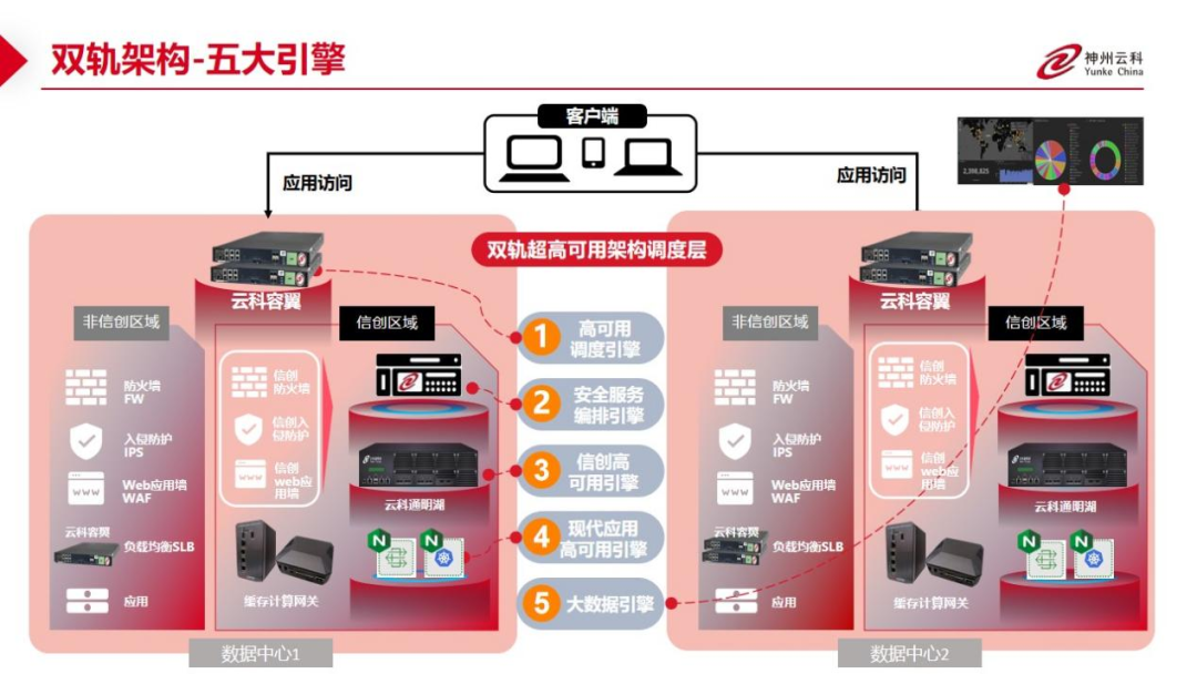 数据中心架构在自主创新的过程中分解为现有架构的非信创区和信创区的两个业务区域,在每个数据中心分为信创区和非信创区后,在两个区域之间的跨区跨域协同方法,金年会jinnian通过5大引擎实现多层次的应用可持续性实践。